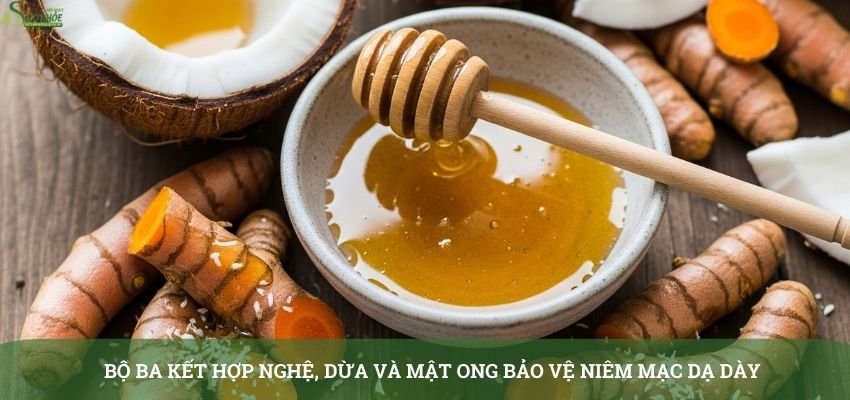 4. Bộ ba kết hợp nghệ, dừa và mật ong