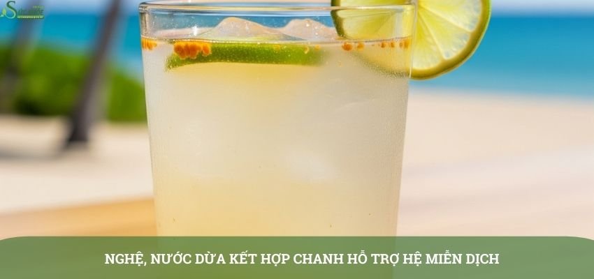 Một cách làm khác được đánh giá cao là kết hợp nước dừa với nghệ và chanh. Trong thực hành người ta thường hòa bột nghệ với nước dừa, sau đó thêm một lượng nhỏ nước cốt chanh. Sự kết hợp này không chỉ tăng cường hấp thu curcumin mà còn cung cấp vitamin C, có vai trò hỗ trợ hệ miễn dịch. Cụ thể đó là: Hòa 1 thìa bột nghệ với 200ml nước dừa và 1 thìa nước cốt chanh.